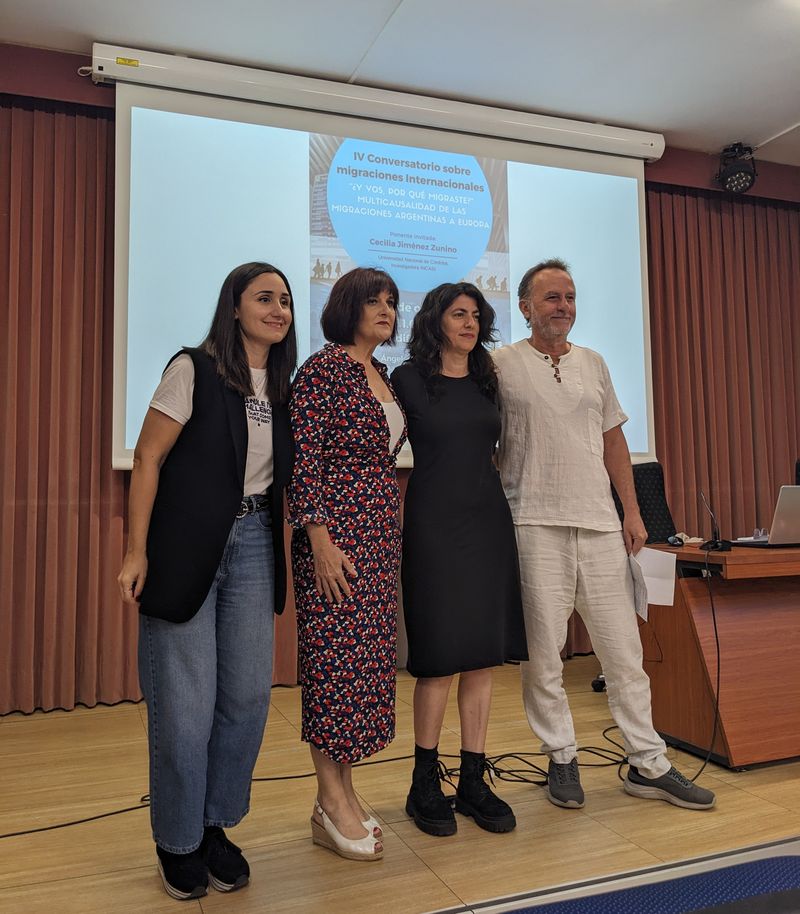 La ponencia central estuvo a cargo de la Dra. Cecilia Jiménez Zunino, prestigiosa investigadora del CONICET y profesora de la Universidad Nacional de Córdoba. Con una amplia trayectoria en el estudio de las migraciones internacionales, la Dra. Jiménez Zunino profundizó en la multicausalidad que caracteriza estos procesos, yendo más allá de las explicaciones económicas simplistas para adentrarse en un entramado de factores sociales, políticos y personales. Su exposición, enriquecedora y rigurosa, ofreció una perspectiva comparada que permitió a los asistentes comprender la complejidad del fenómeno.